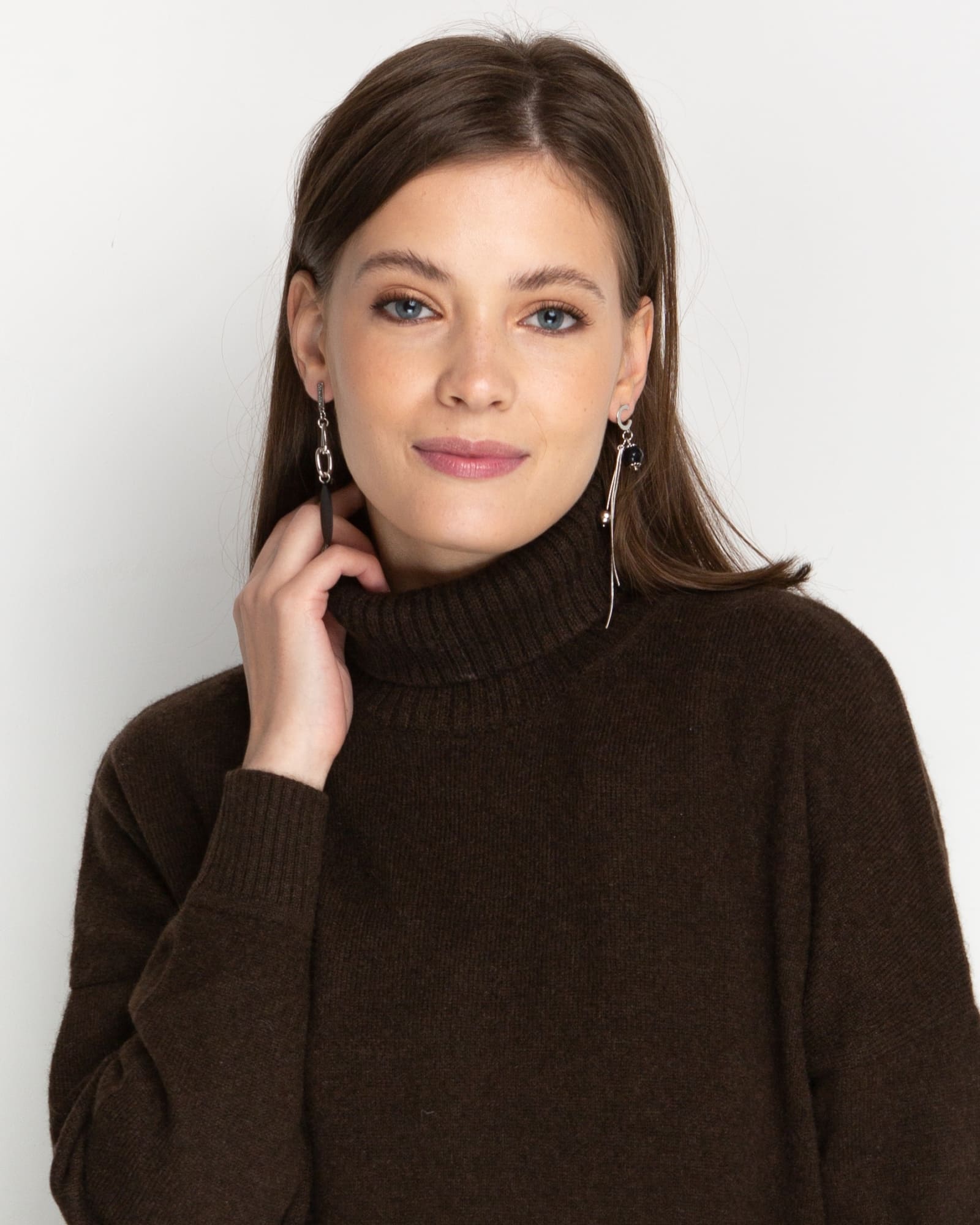 Наконец-то получила и купила свитер. Красивый шоколадный цвет. Тонкий, но тёплый. Оверсайз, но комплектуется и с юбками и с брюками. Кто не любит оверсайз можно взять на размер меньше. Очень удачная вещь, по крайней мере, для меня. Рекомендую! |