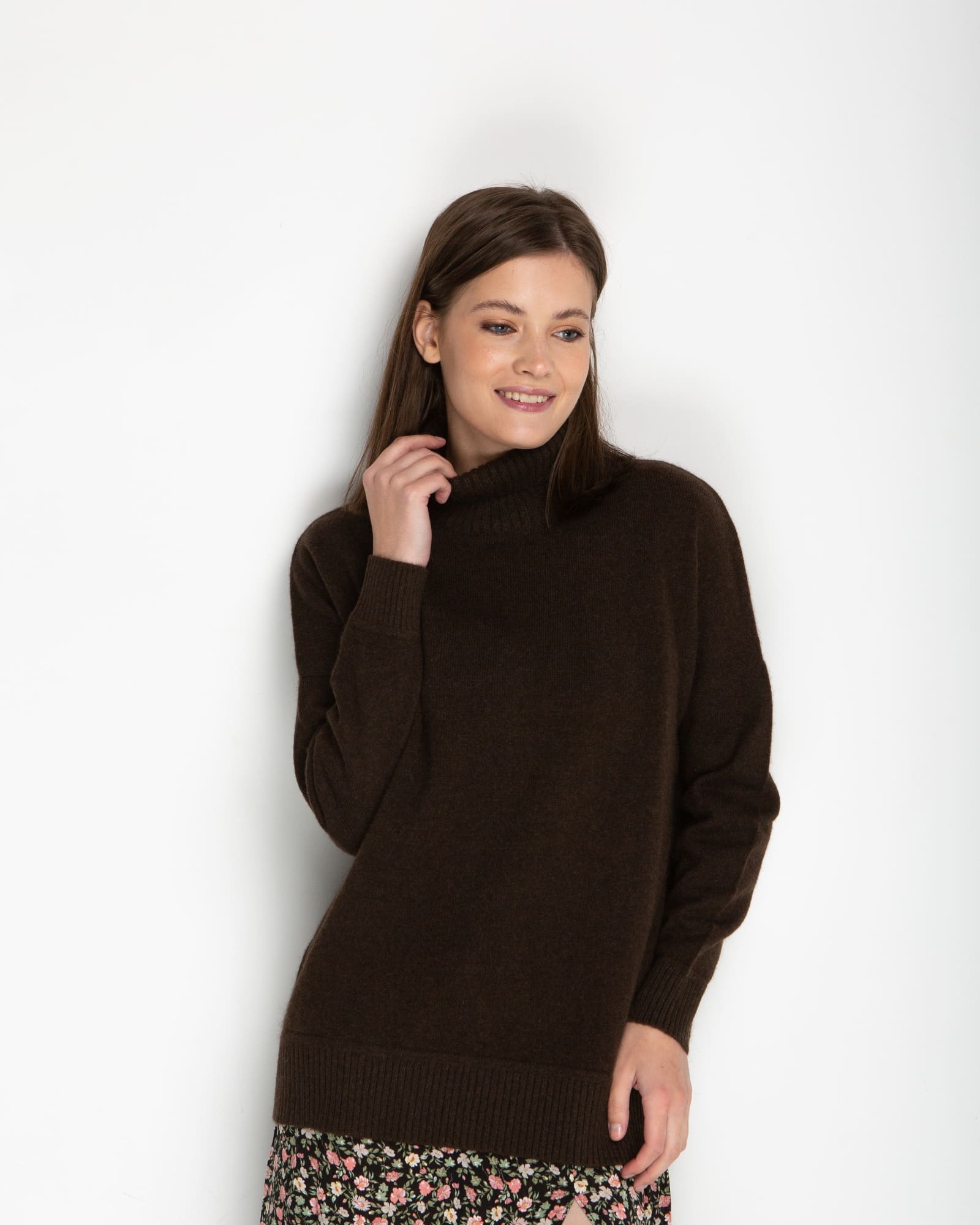 Этот женский джемпер из пуха яка — идеальный выбор для прохладных дней. Натуральный пух яка обеспечивает отличные теплоизоляционные свойства, даря уют и комфорт в любую погоду. Модель выполнена в насыщенном коричневом цвете, который подчеркивает естественность и элегантность вашего образа.
