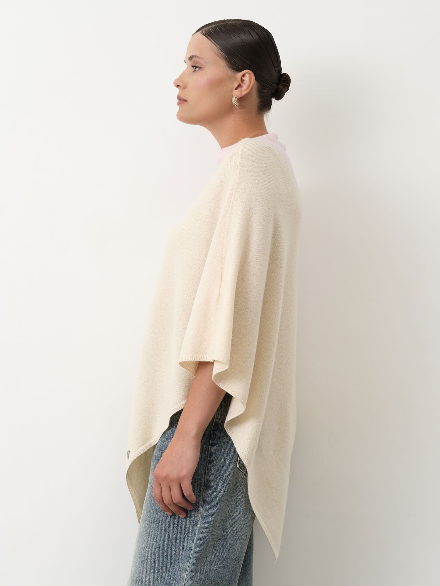 заказывала пончо из натуральной ткани в Монголшоп впервые — и уже влюблена! Асимметричный подол выглядит изящно и современно.
