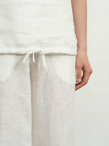 100% лен — натуральный, дышащий материал с легкой фактурой. Обеспечивает отличную воздухопроницаемость и комфорт в теплую погоду.