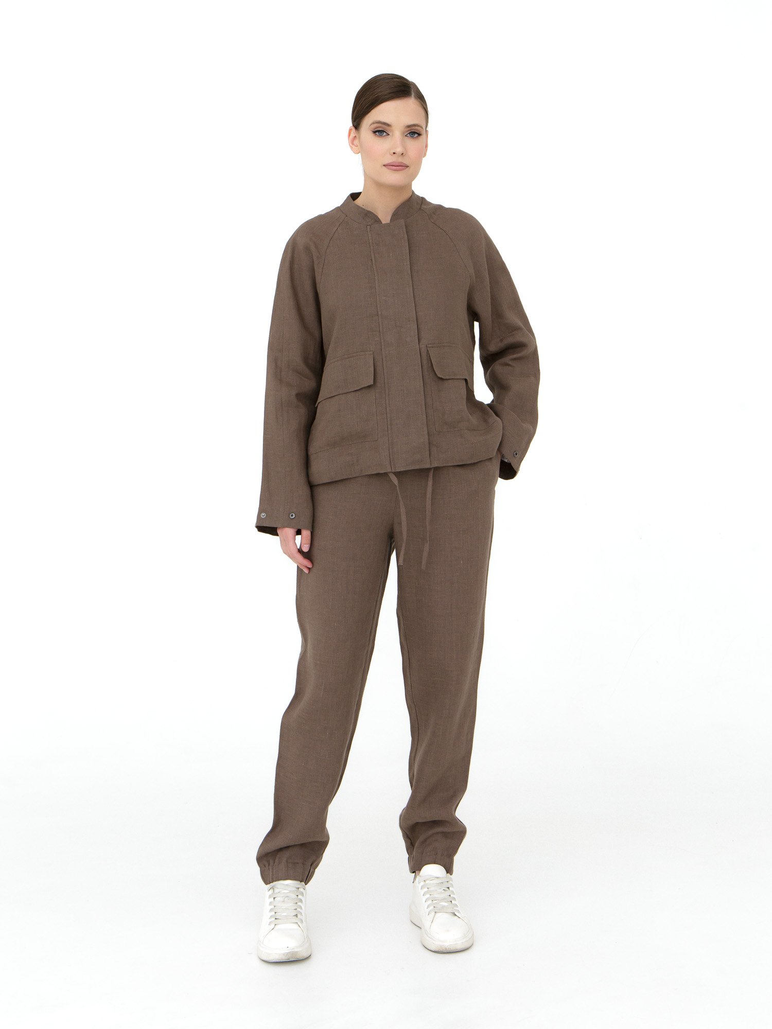 Жакет отлично сочетается с брюками, юбками и платьями. Можно носить как часть комплекта или как самостоятельный элемент гардероба. Подходит для повседневных образов, прогулок и путешествий. Сочетайте с кедами, сандалиями или обувью на низком ходу.