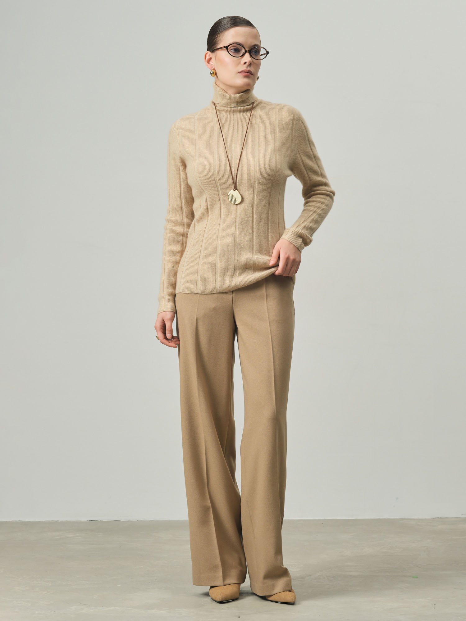 Комфортная посадка мягко повторяет линии фигуры, не сковывая движения. Нежный кашемир обеспечивает лёгкость, тепло и приятные ощущения при носке в течение всего дня.