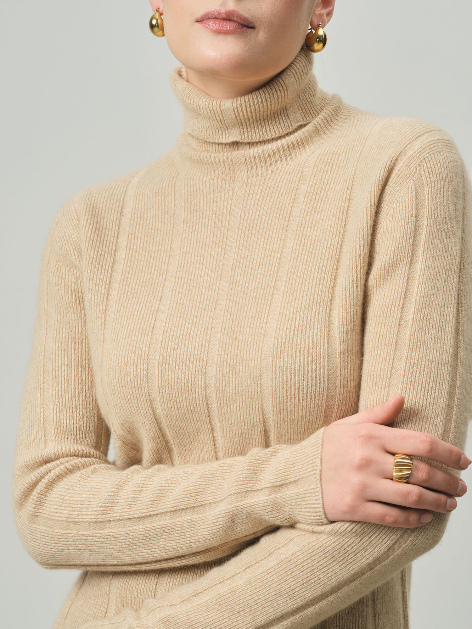Водолазка женская из кашемира KW051693-D бежевая