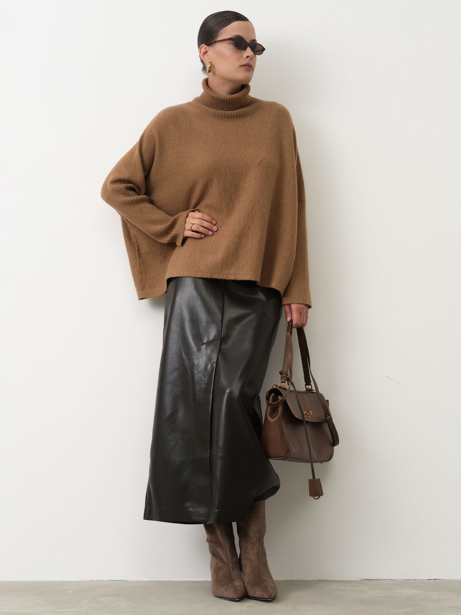 Свободный крой с эффектом oversize и спущенной линией плеча. Высокая горловина добавляет дополнительный комфорт и защиту от холода.